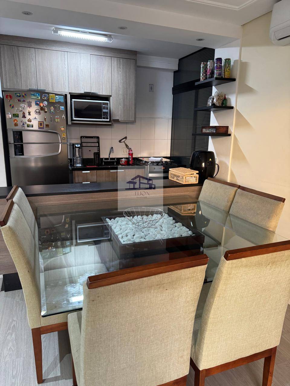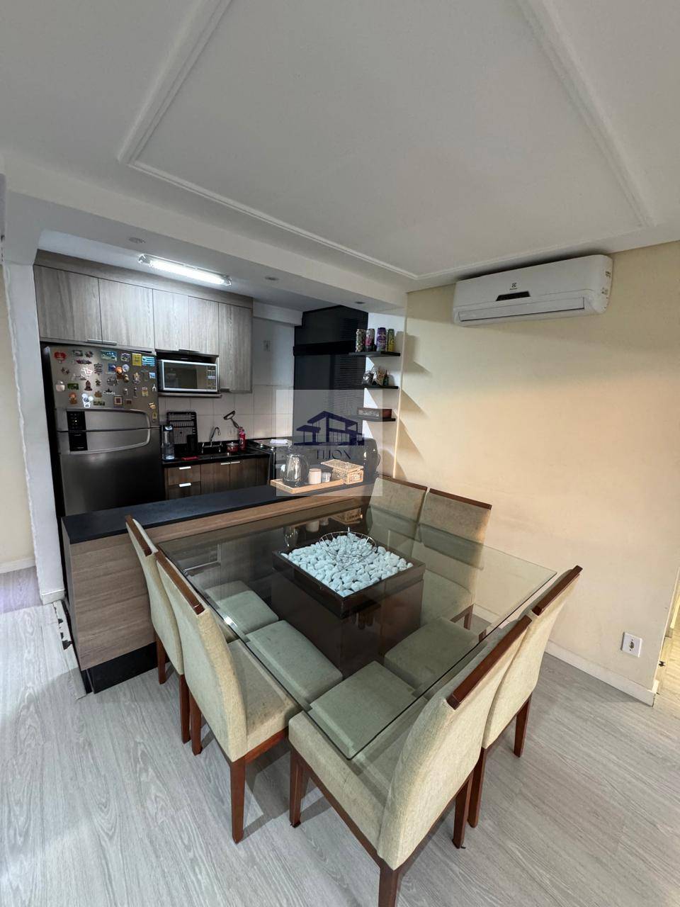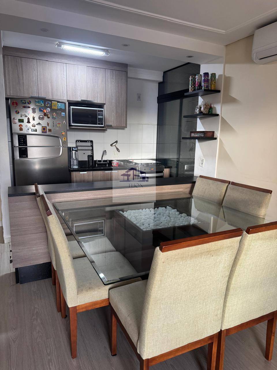 O apartamento é um espaço moderno e acolhedor, ideal para quem busca conforto e funcionalidade. Ao entrar, você é recebido por uma sala ampla em dois ambientes, equipada com ar-condicionado e uma iluminação diferenciada, que cria um clima agradável e sofisticado. A sacada proporciona um espaço extra para relaxar e desfrutar da vista.