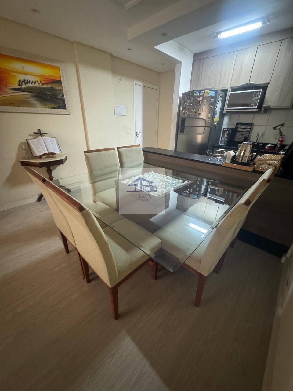 A área de serviço é funcional e conta com um armário, sendo separada da cozinha por uma porta de vidro que ajuda a manter a organização. O apartamento também possui uma vaga de garagem rotativa, garantindo praticidade para quem possui veículo. É um lar perfeito para quem procura um espaço bem distribuído e com todas as comodidades necessárias.