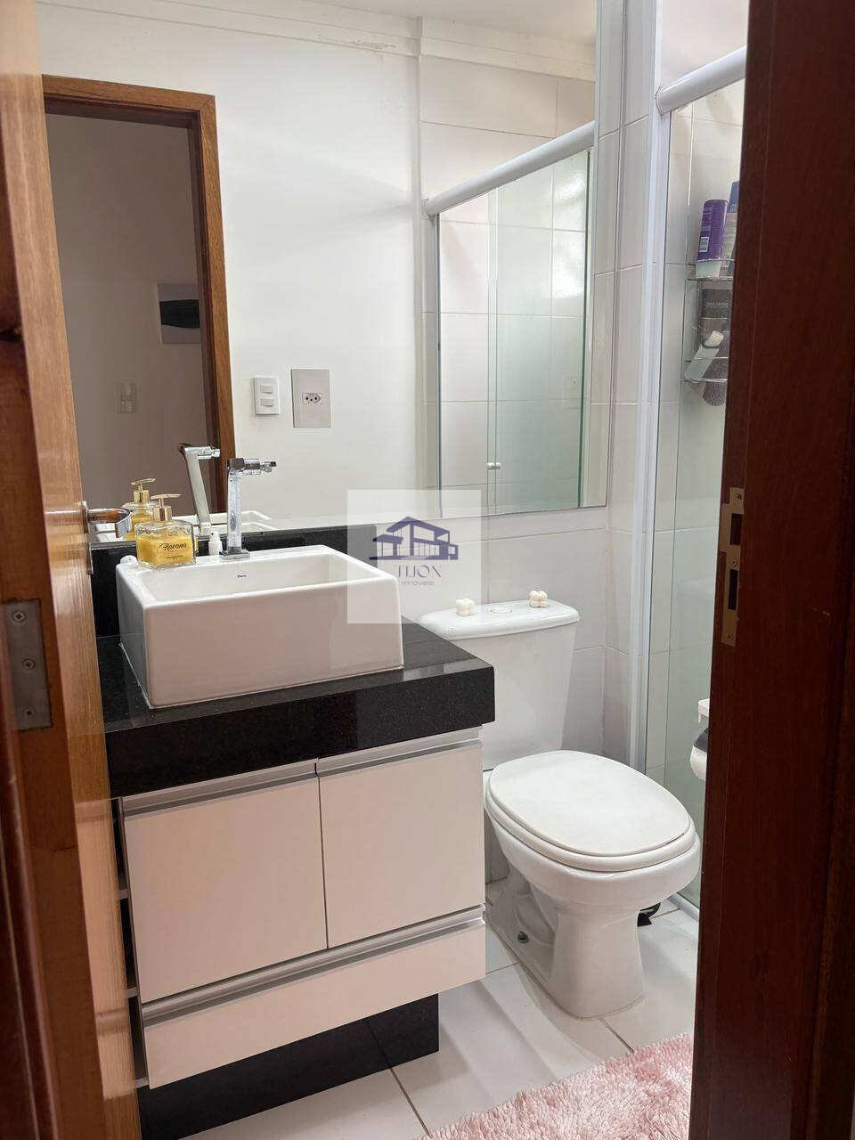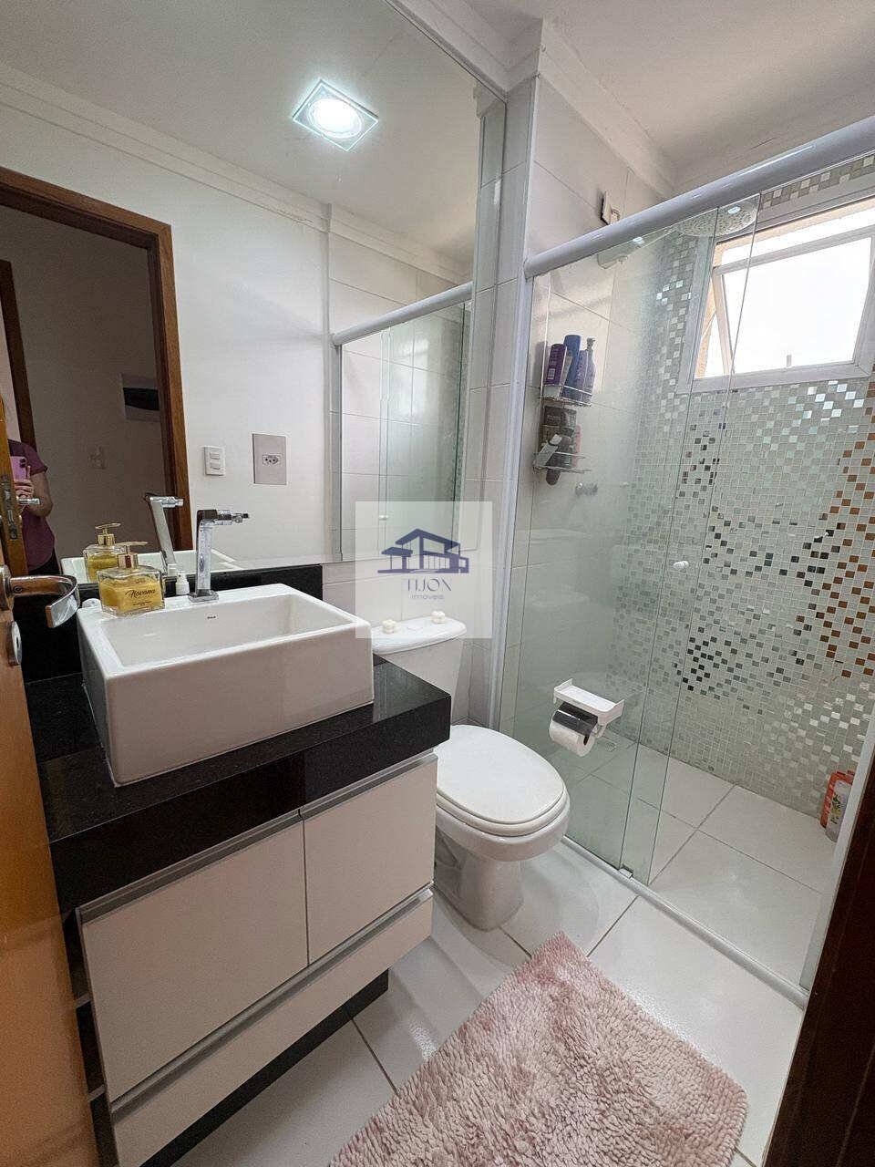 O apartamento conta com dois quartos bem iluminados e um banheiro social elegantemente projetado, completo com box de vidro.