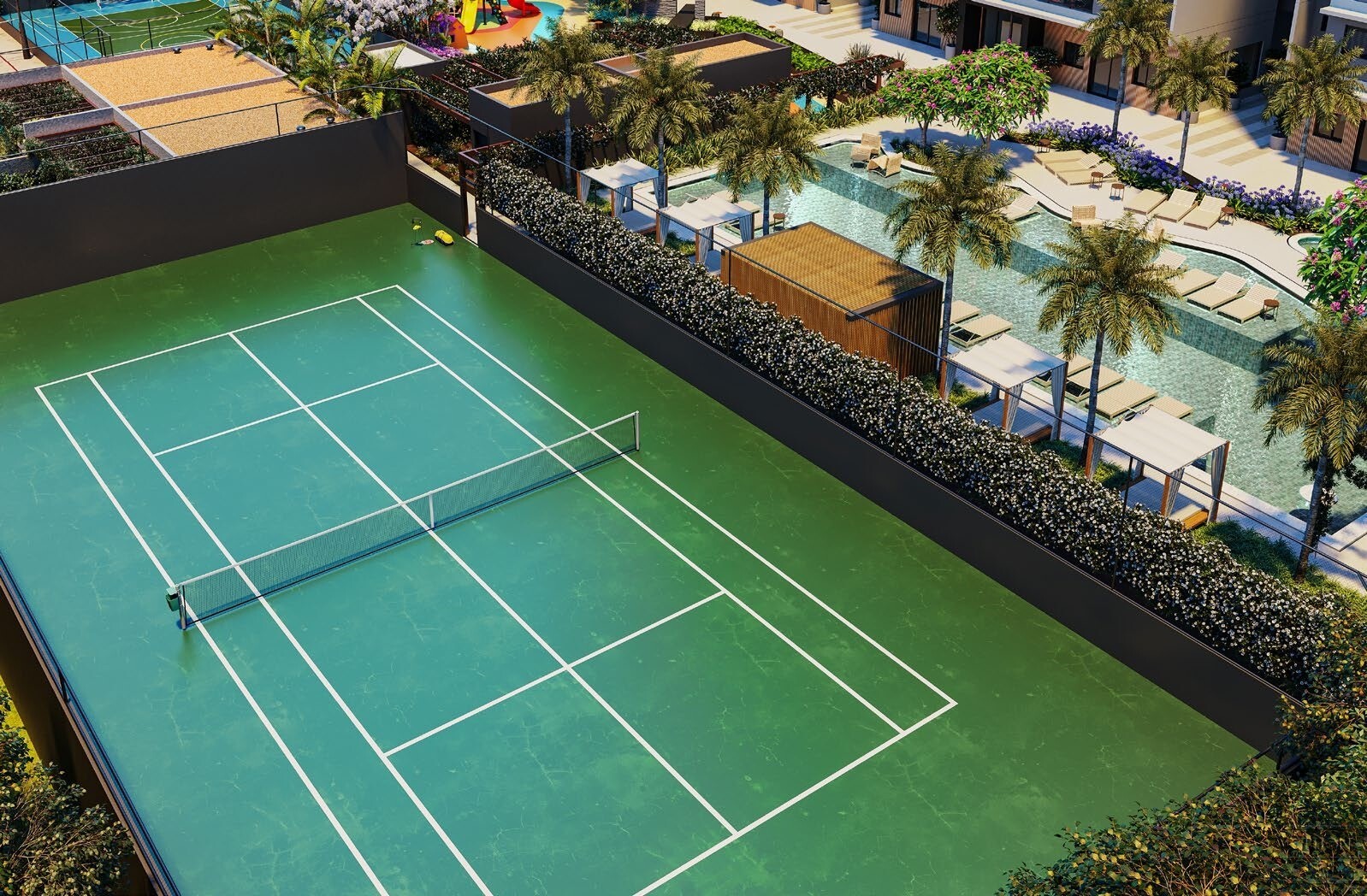 -Quadra de tênis oficial;