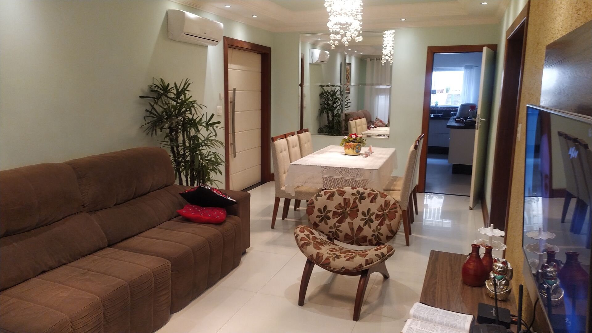 Casa térrea, com finíssimo acabamento interno, Sala dois ambientes ampla com ar condicionado, 3 dormitórios sendo 2 suítes, closet na máster, armários na cozinha.