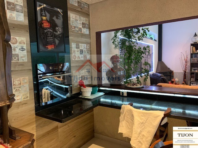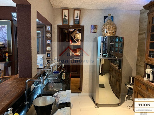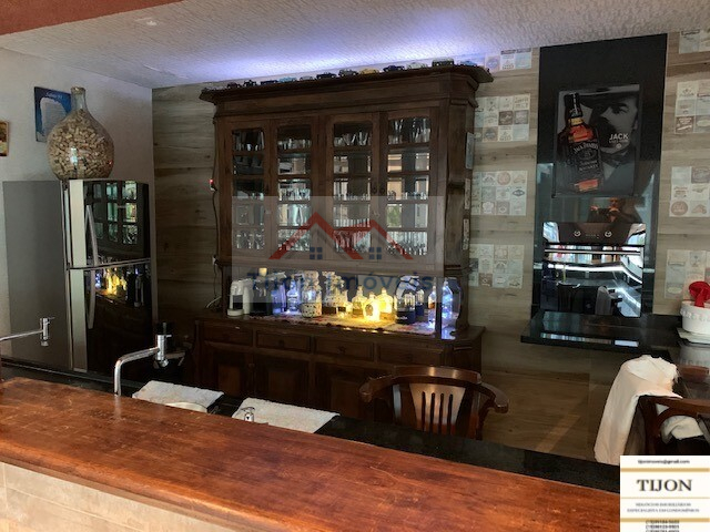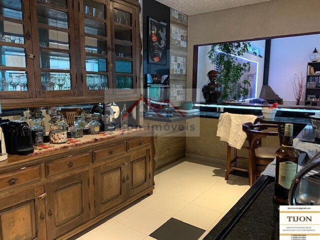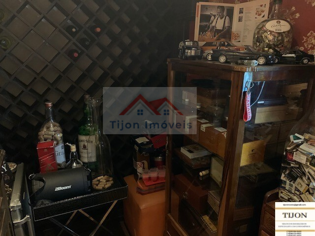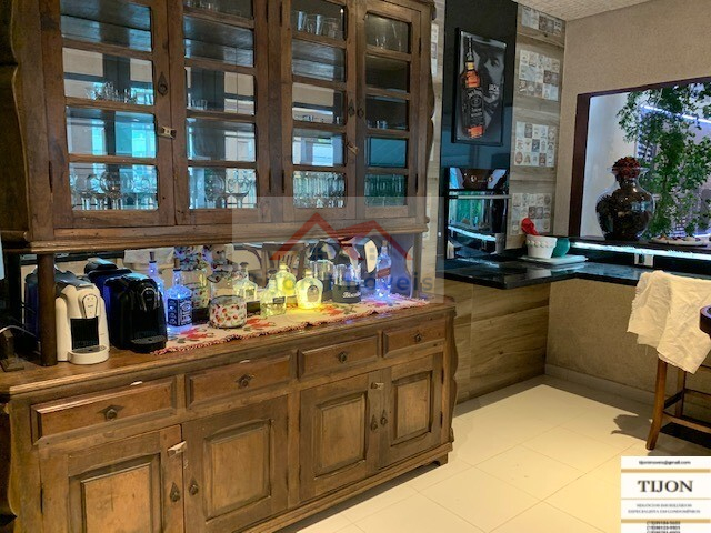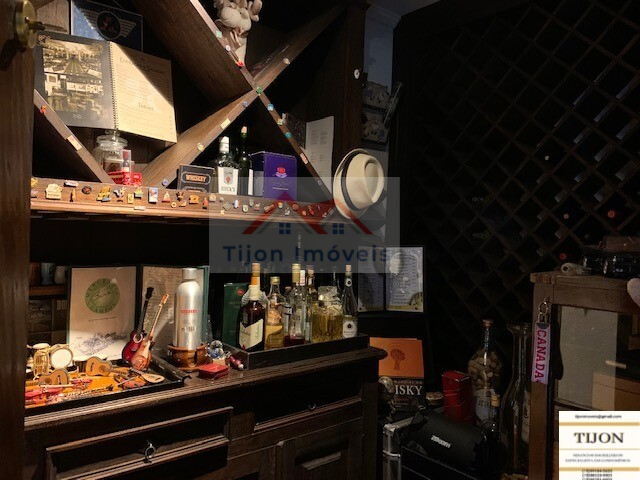 Área Interna Edícula, parte baixo: Lavanderia com tanque de agua da caixa construída somente para a lavanderia e parte baixa da edícula, dois lavabos, um para a sala de almoço, outro para o bar, uma adega para 400 garrafas de vinho, integrada a uma charutaria, um bar estilo PUB INGLES, com duas pias, balcão de mármore preto, um forno de pizza tipo iglu, integrado ao lado externo do quintal, um balcão de madeira maciça (CANELA), bancos com encosto de braços para 8 pessoas no balcão e mais 8 pessoas em duas mesas, um Home Theater com espaço para telão, tudo integrado ao Bar.