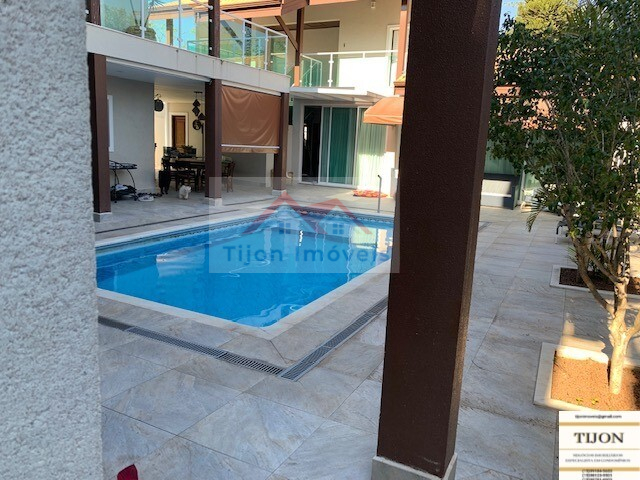 Área externa: com vagas para 6 carros, lindo jardim na entrada, uma entrada lateral para funcionários, muro de alvenaria de um lado, para mais privacidade, e um muro de cerca vivas, (MURTA) do outo lado, totalmente forrado, piscina com aquecimento, churrasqueira com forno de lenha e forno de pizza com um amplo espaço interno, balcão integrado a churrasqueira para 12 pessoas, um sala de almoço com uma mesa feita a mão para 14 pessoas, varanda na casa toda, quintal no fundo com um deposito para materiais não muito utilizados, um segundo tanque de roupas com agua de rua, e um excelente espaço para cães.