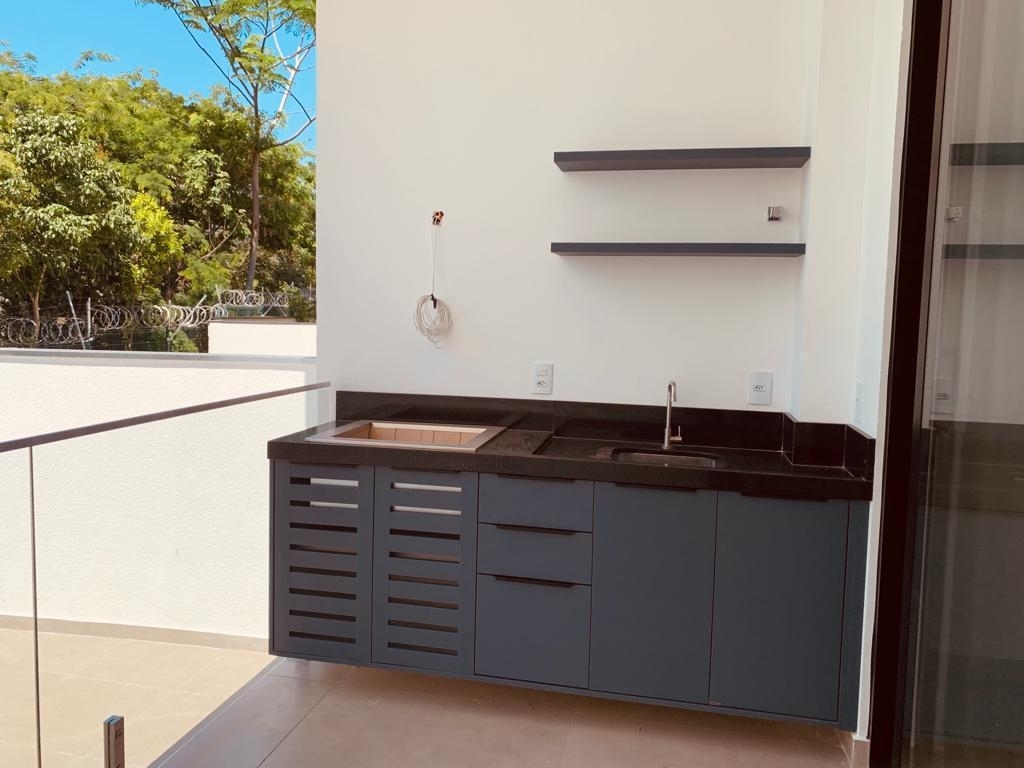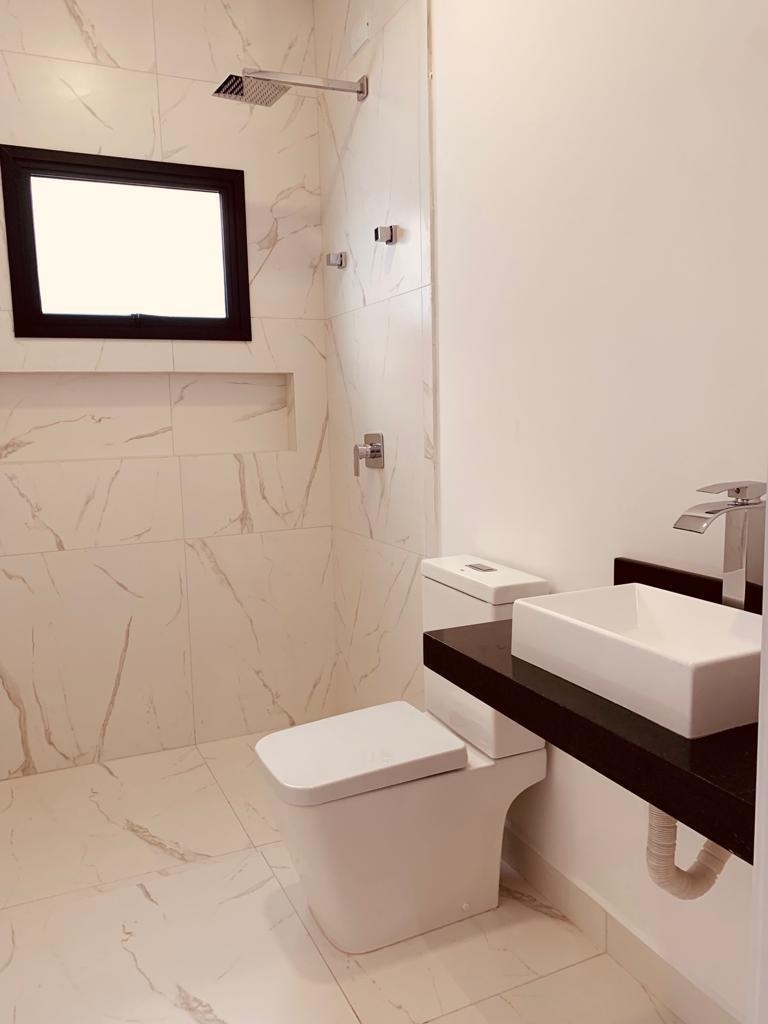 Acabamento Interno: Móveis planejados na Cozinha, Área Gourmet e Sala. Eletrodomésticos como Cooktop, forno e microondas. Piso Porcelanato em todos os ambientes; Pias em mármore esculpidas no banheiro e lavabo; Porta Pivotante na cor preta; Janelas dos quartos com persianas integradas e automatizadas na cor preta; Preparação para ar-condicionado em todos os ambientes; Preparação para instalação de placa solar e aquecimento na piscina. Cozinha com acesso direto a área gourmet. Casa com pé direito alto de 4 metros, com ótima iluminação e ventilação natural. Iluminação decorativa noturna. Acesso externo direto para área de lazer e serviço.
